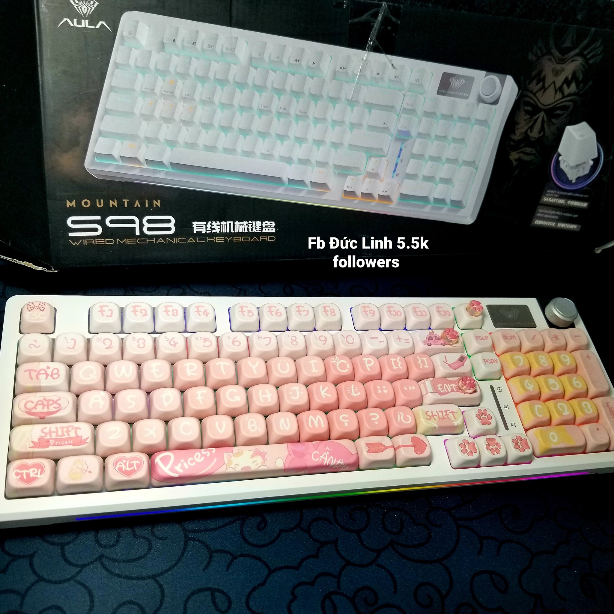 Phím Aula S98 Keycap MOA Cute 3 Mode 2nd Blue Switch